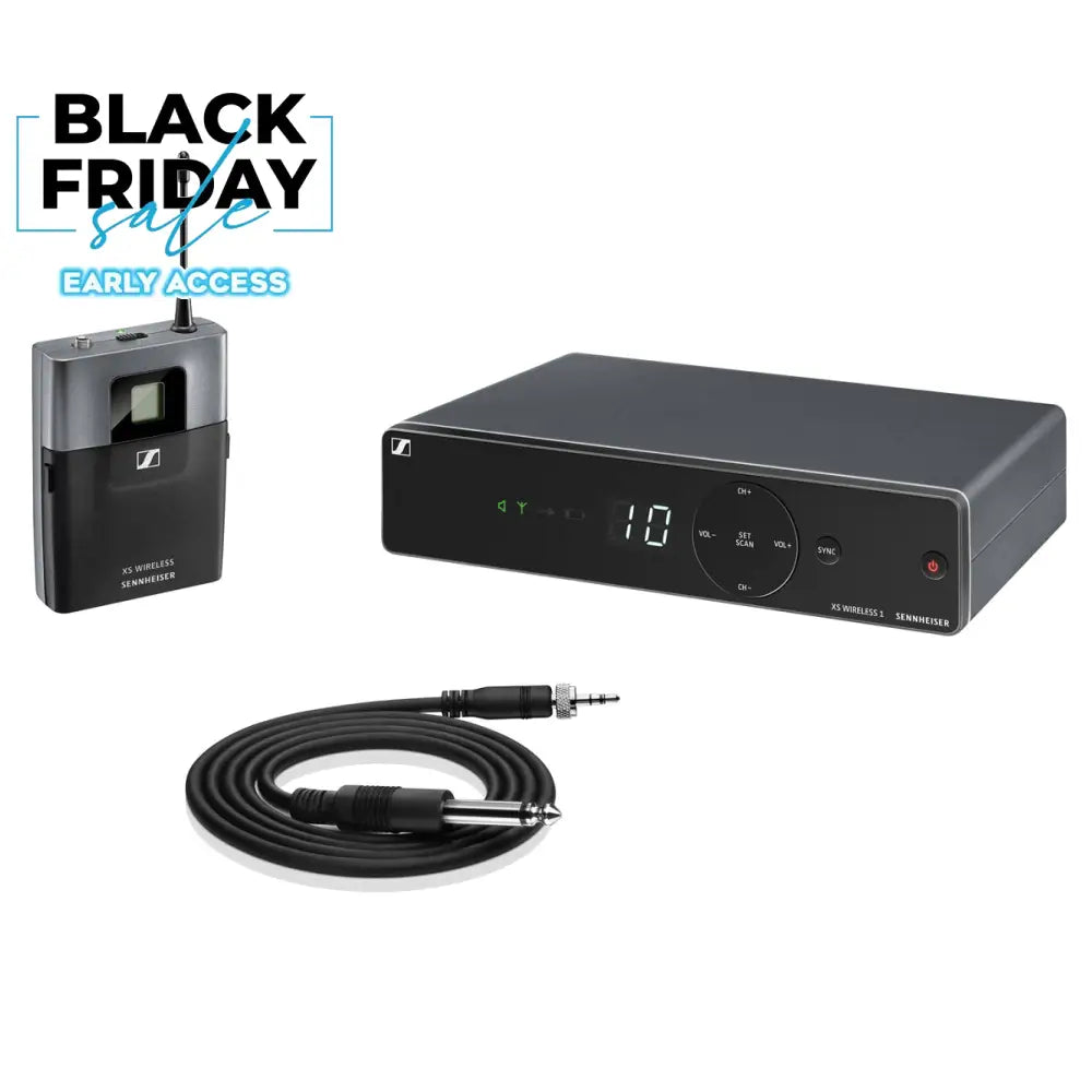 Amplify your tunes. Go for XS WIRLESS 1 and rely on a solid wireless transmission with up to 10 compatible channels in a stable UHF band. The XS WIRELESS 1 INSTRUMENT SET is an easy to use all-inone wireless system for guitarists and bassists, excellent for live sound. The set includes an intuitive stationary receiver for quick set-up and hassle-free handling, as well as a compact bodypack transmitter and a robust instrument cable.